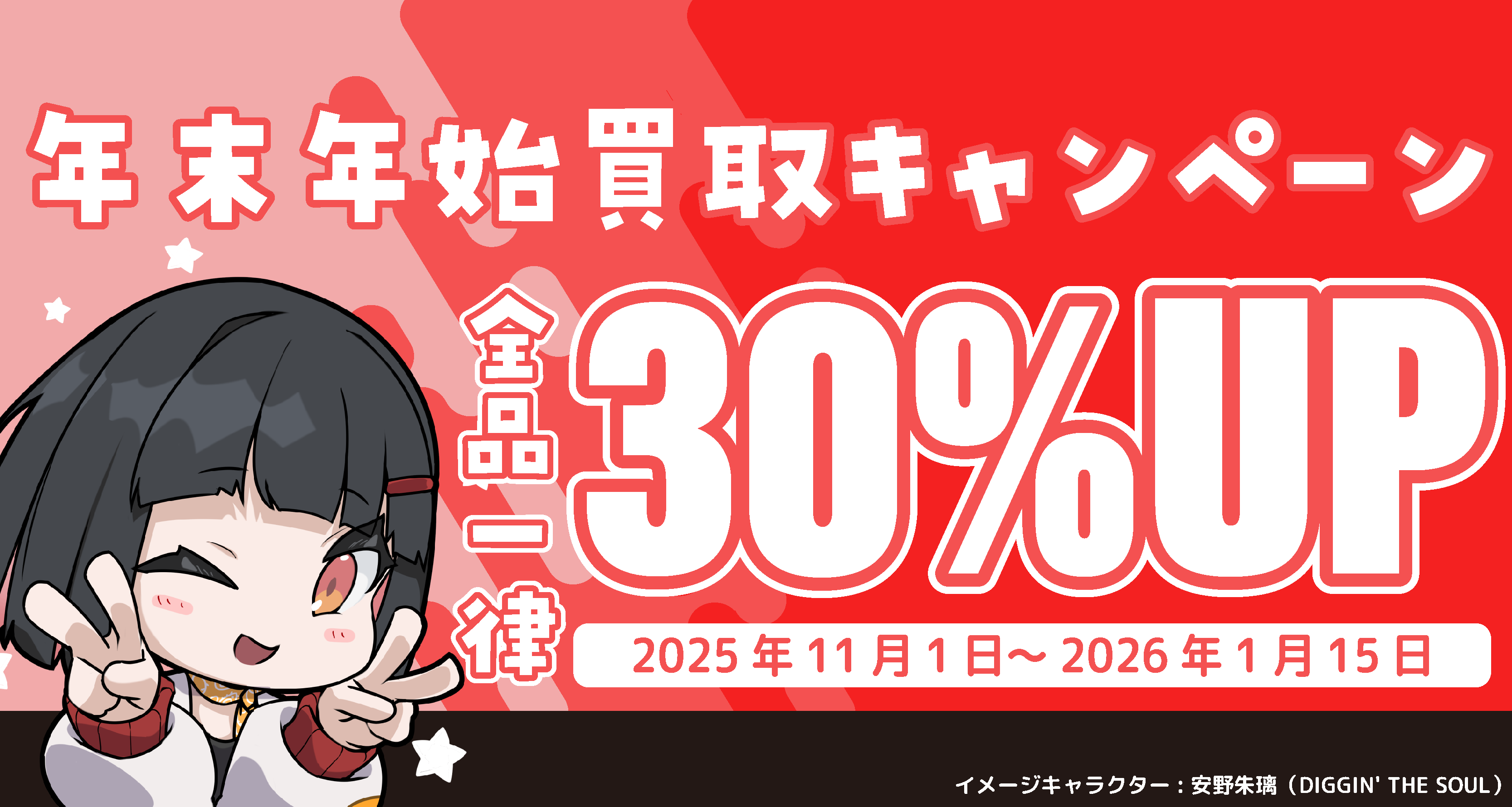 期間中に宅配買取をお申し込みいただくと、点数・査定合計額に関わらず一律買取金額30%プラスアップ!