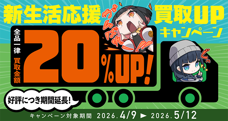 期間中に宅配買取をお申し込みいただくと、点数・査定合計額に関わらず一律買取金額20%プラスアップ!